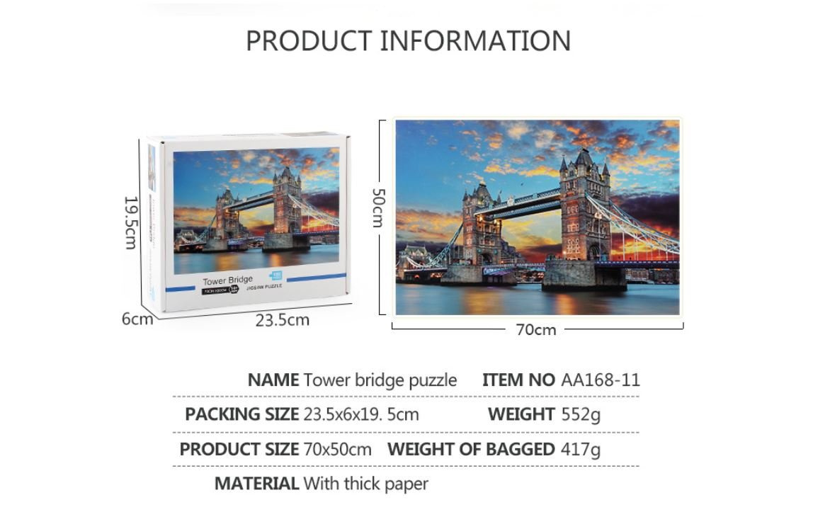 1000Pcs Thick Papers Jigsaw Puzzles Fun Game Challenge Gift For Teens Kids (Tower Bridge)