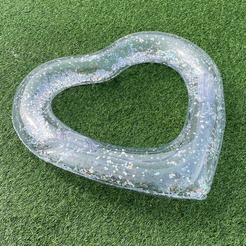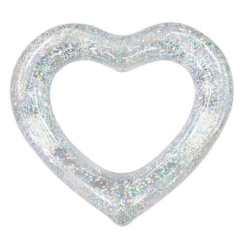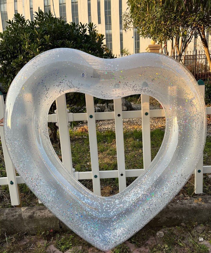 2 Sizes Inflatable Pool Float Swim Ring Heart Shape White Glitter