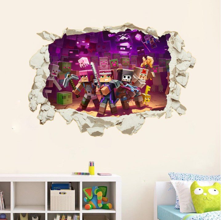 3D Gaming Wall Art Stickers MINE Home Decor Decals PVC Kids Room Game Poster L