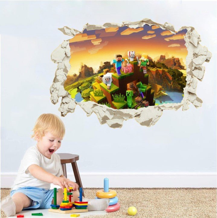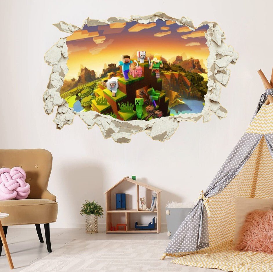 3D Gaming Wall Art Stickers MINE Home Decor Decals PVC Kids Room Game Poster O