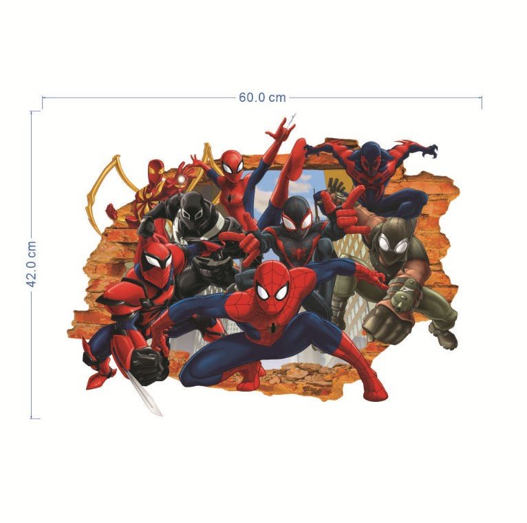 Bring the Spider-Verse to your child’s room with this action-packed Spiderman Team 3D wall sticker. Featuring multiple versions of Spiderman in bold superhero poses, this design comes with a realistic wall-breaking effect, making it look like the heroes are leaping right into the room.