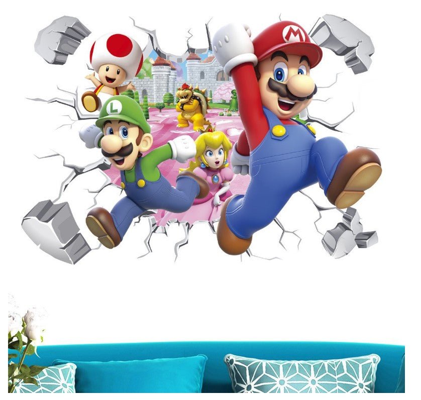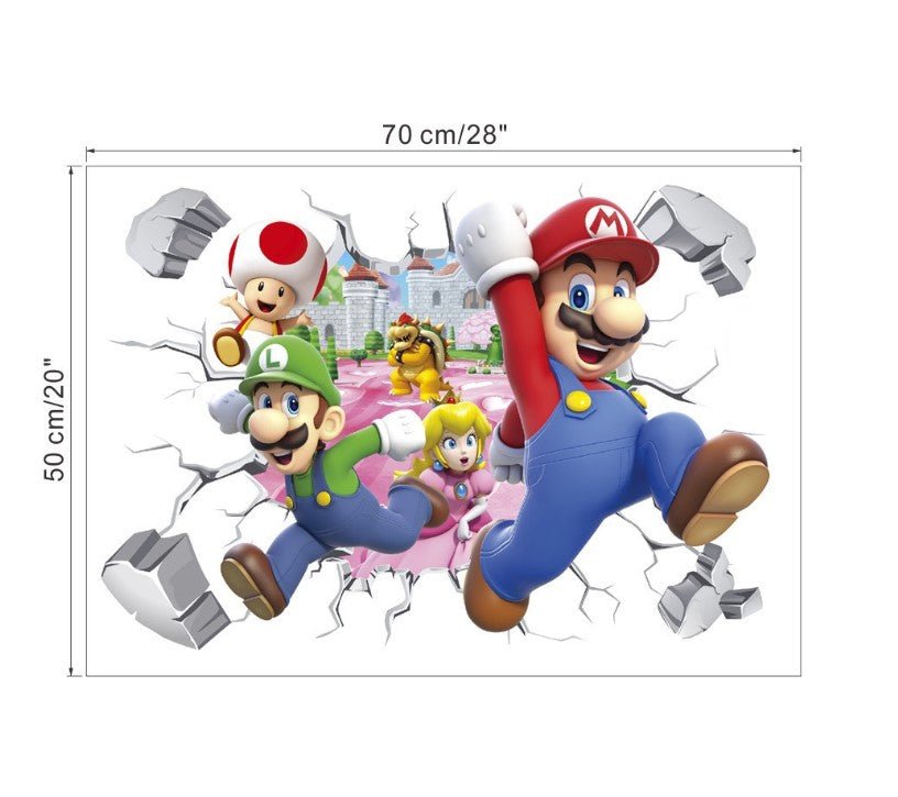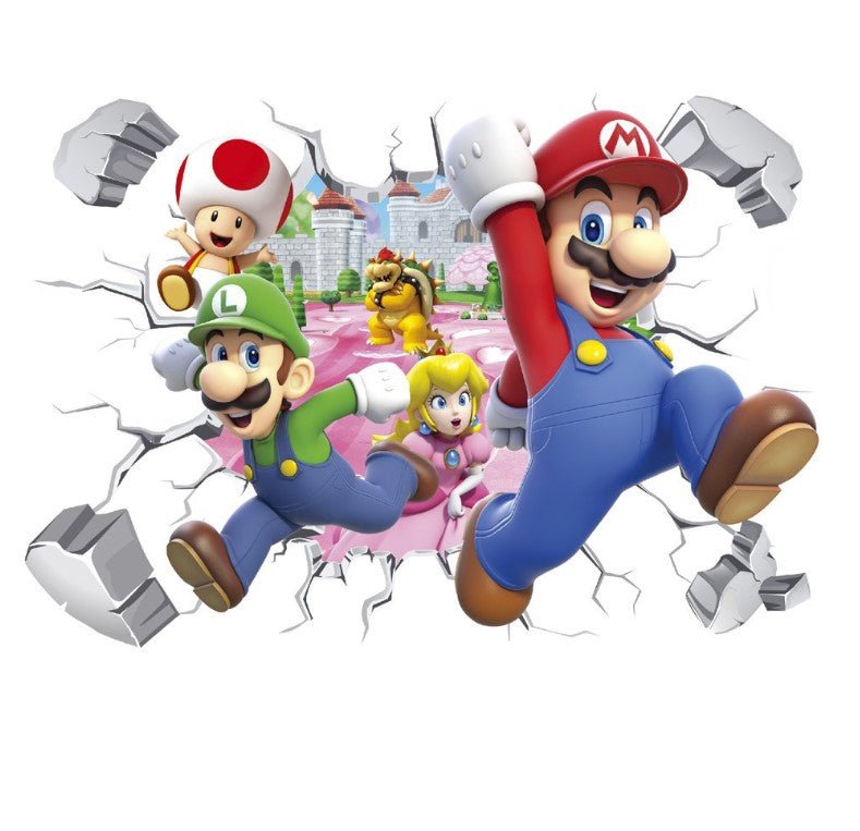 Bring action and adventure to your walls with these Super Mario 3D effect removable wall stickers. Featuring Mario, Luigi, Princess Peach, Toad, and Bowser bursting through the wall, this design creates a fun and dynamic look that feels like the Mushroom Kingdom has come to life.