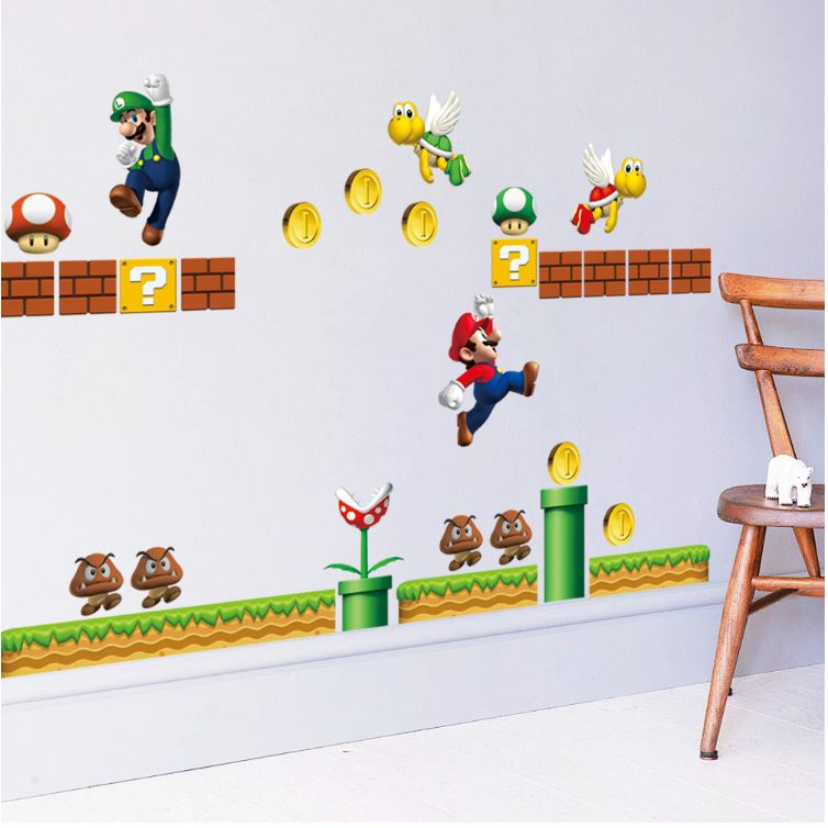 Level up your child's room with this DIY Super Mario Wall Sticker set! This complete mural kit lets you build your very own game level, bringing the iconic world of Super Mario Brothers to life. The set features beloved characters like Mario and Luigi, alongside classic game elements such as coin blocks, Goombas, and Koopa Troopas.
