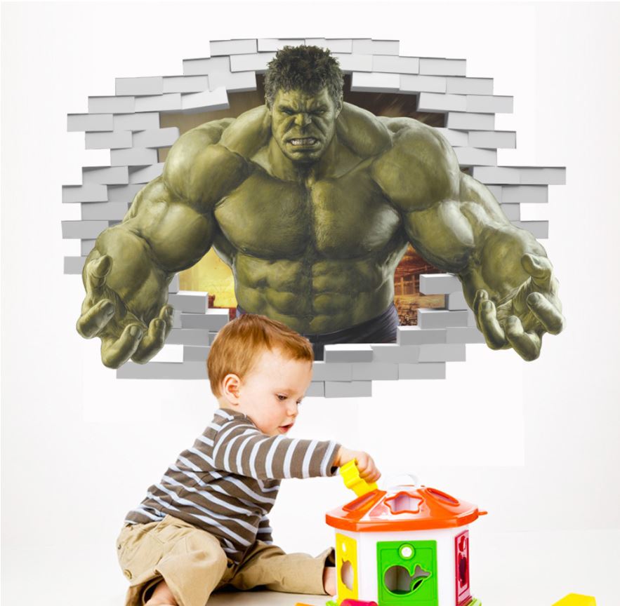 3D Wall Stickers Removable The Avengers Hulk Broken Wall Kid Boy Room