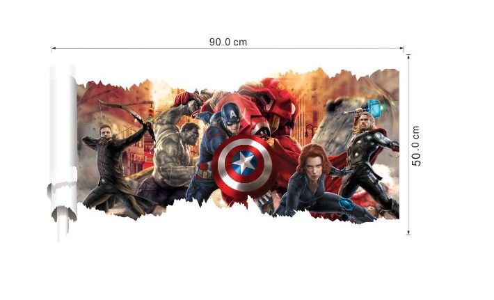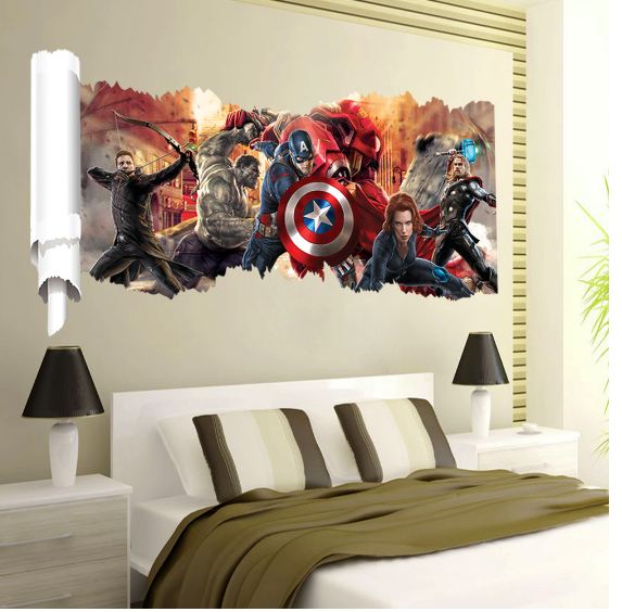 3D Wall Stickers Removable The Avengers Superhero Broken Wall Kid Boy Room Decal