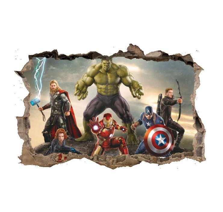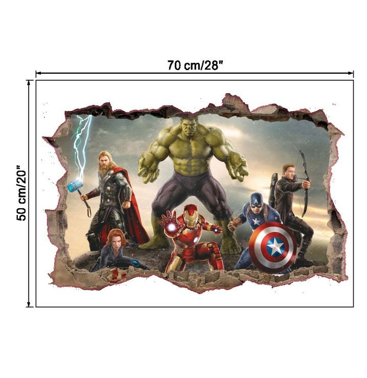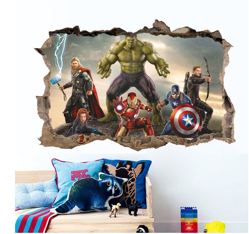 3D Wall Stickers Removable The Avengers Superhero Broken Wall Kid Boy Room Decal