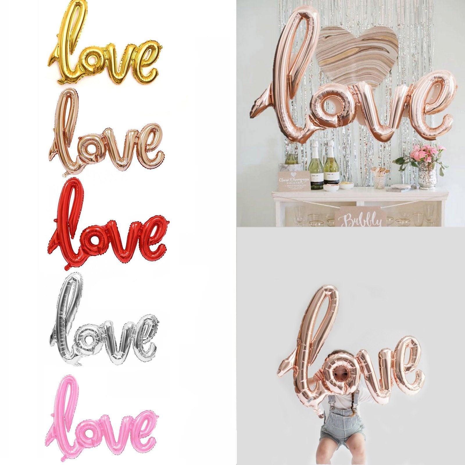 40" Handwriting LOVE Foil Balloons Wedding Proposal Marriage Decor Rose Gold Red