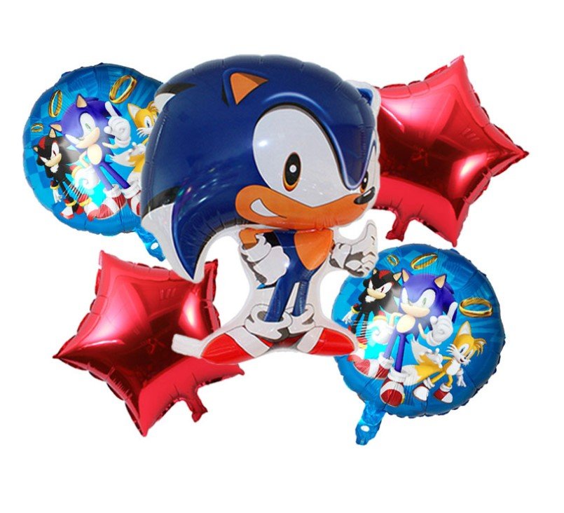5PCS Sonic The Hedgehog Balloons Star Foil Balloon Birthday Party Decoration Set