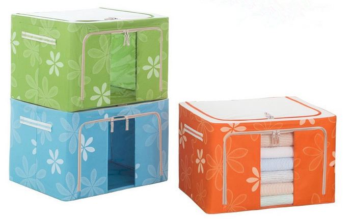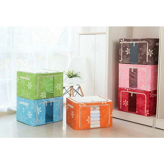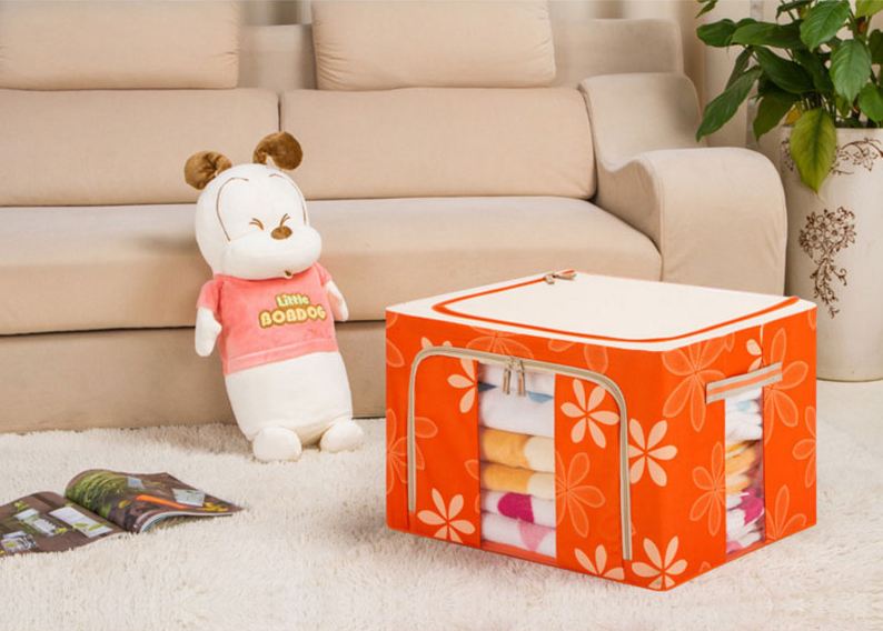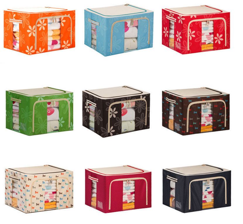 66L Oxford Cloth Steel Frame Storage Box Quilt Clothes Organizer Waterproof Bag