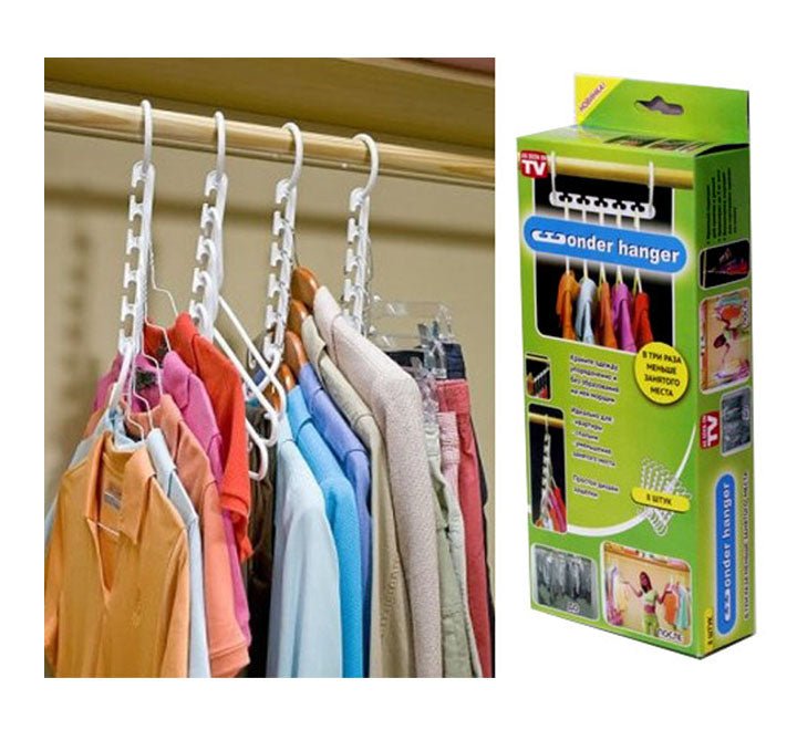 Wonder Hanger space saving plastic hanger As Seen on TV. Each Wonder Hanger in Pakistan holds several pieces of clothing, and works with any type of barn and was able to hang clothes either horizontally or vertically. Triple your closet space while maintaining the organization’s clothing and wrinkle-free with this affordable basic wardrobe. Wonder Hanger price in Pakistan can be many hangers fit on each slot easy to assemble and attached to any standard closet rod. You can triple your closet space by hanging clothes, coats, purses and belts vertical layered manner ideal for bedrooms, small apartments or anyone looking to reduce it features a unique, patented on / off open slot design