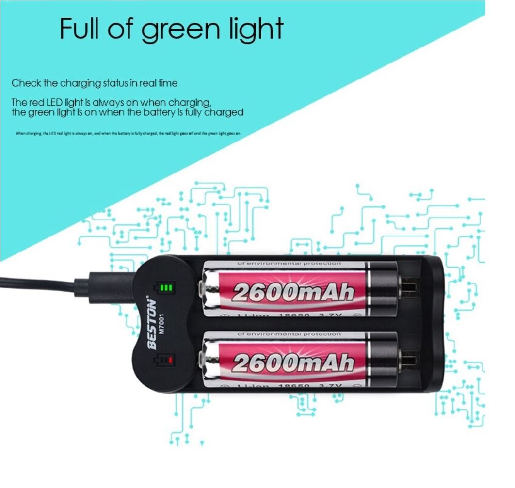 Check the charging status in real-time, the LED red light is always on when charging, and the green light is on when the battery is fully charged