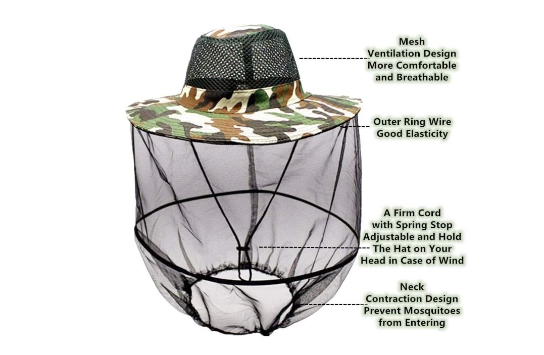 Camouflage Hat with Mosquito Net Bee Fishing Repellent Mesh Camping Hiking Camo