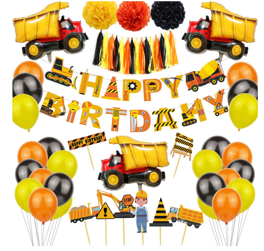 Construction Vehicle Helium Foil Balloons Happy Birthday Set Party Decorations