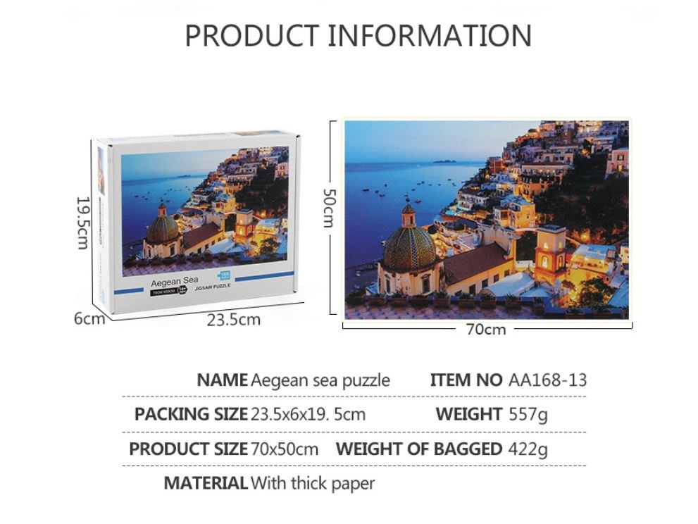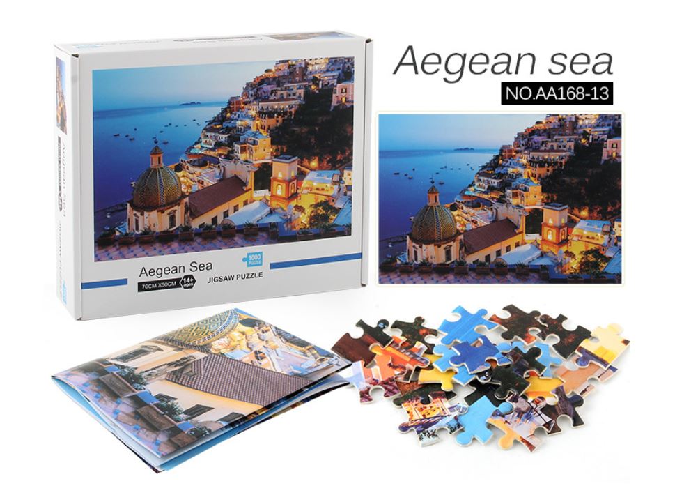 1000Pcs Thick Papers Jigsaw Puzzles Fun Game Challenge Gift For Teens Kids (Aegean Sea-B)