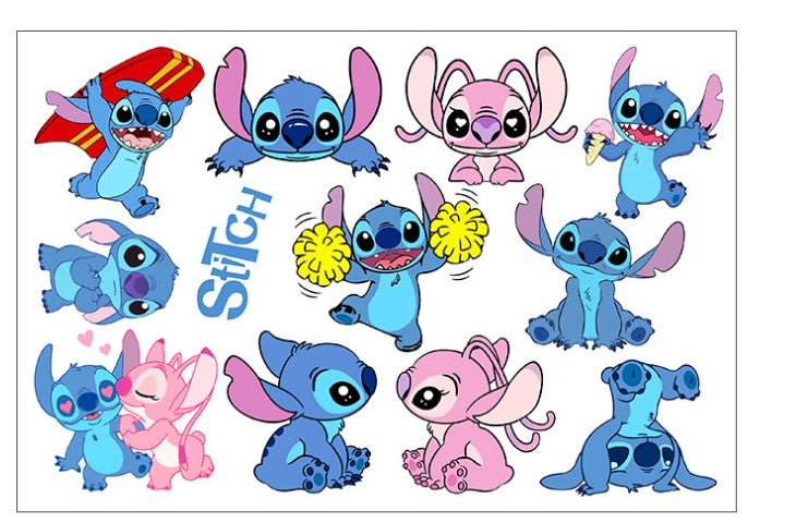 Designs: Includes both Lilo and Stitch in multiple iconic poses.