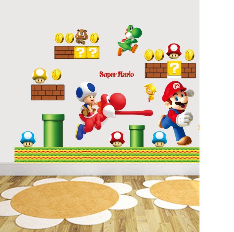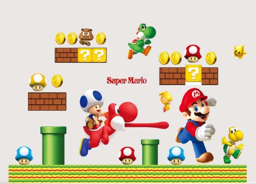 Bring the fun of the Mushroom Kingdom to your child's room with this DIY Super Mario Wall Stickers! This vibrant decal set lets you create your very own level, featuring beloved characters like Mario, Yoshi, Toad, and classic game elements like Goombas and coin blocks. It’s the perfect way to transform any space into a playful pixelated adventure.