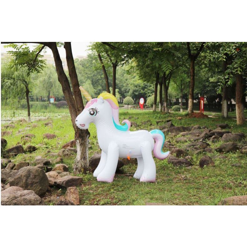 We recommend you with a species of unicorn with an epic ability: they are able to spray water from their horns! This giant inflatable unicorn could also be a water sprinkler! It’ll use its magic powers to spread refreshingly cool water to you, your kids and your lawn!