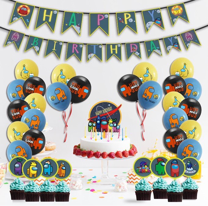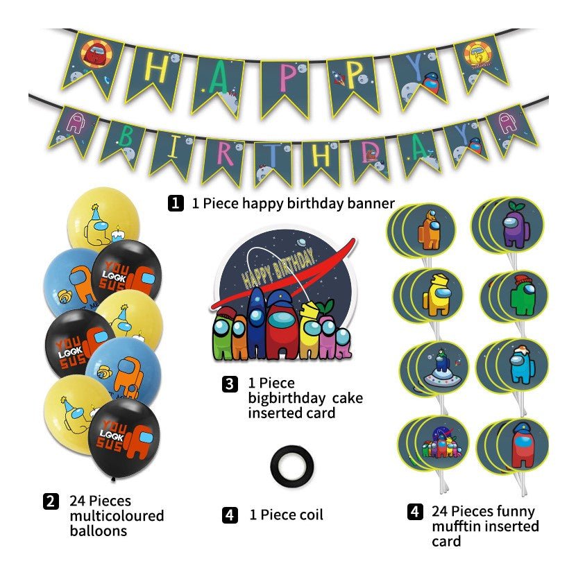 Set of Among Us Game Kids Birthday Party Supplies Balloons Banner Cupcake Topper