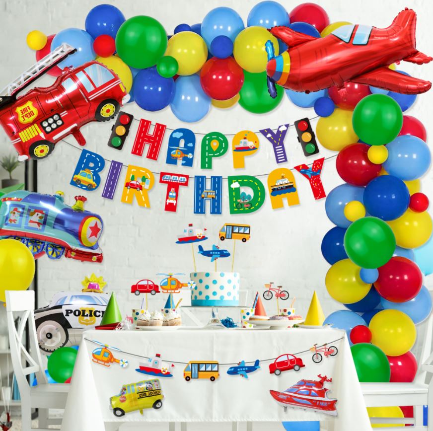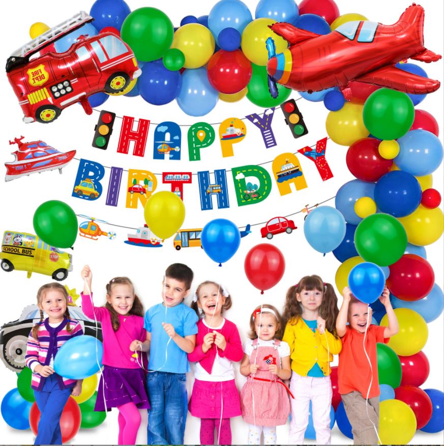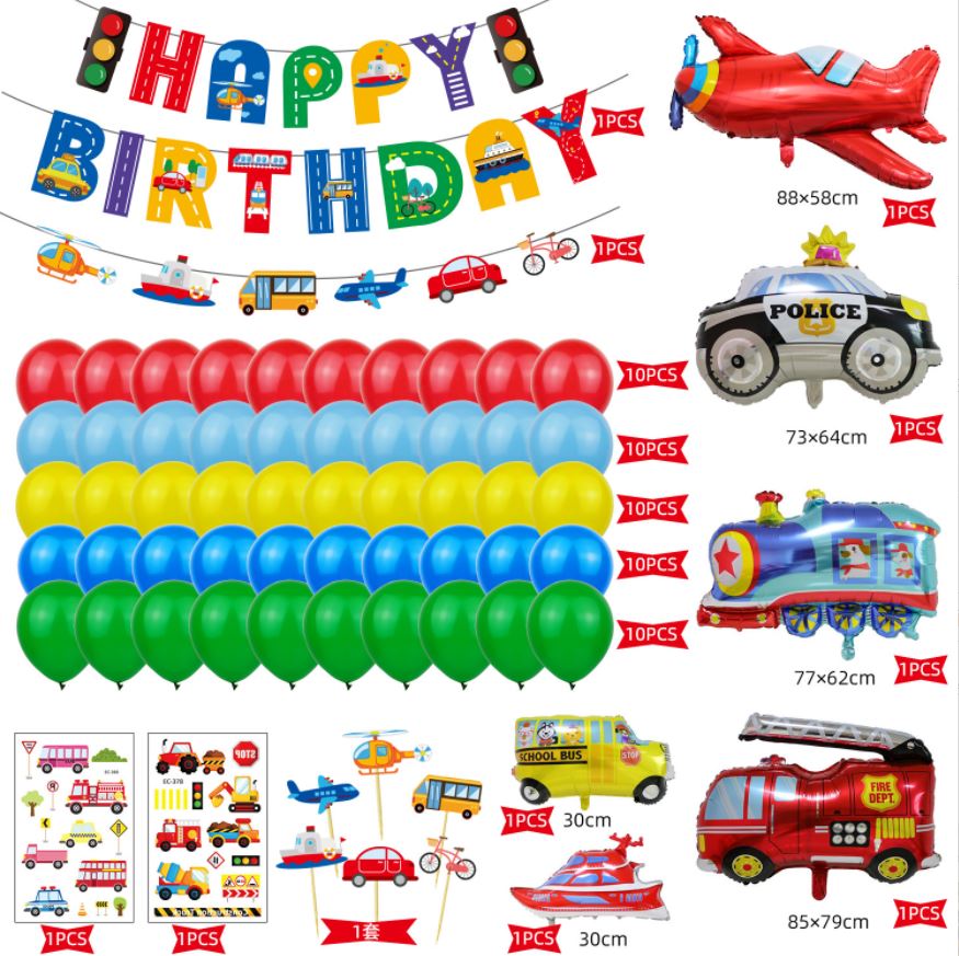 Transportation Helium Foil Balloons Happy Birthday Set Kids Party Decorations